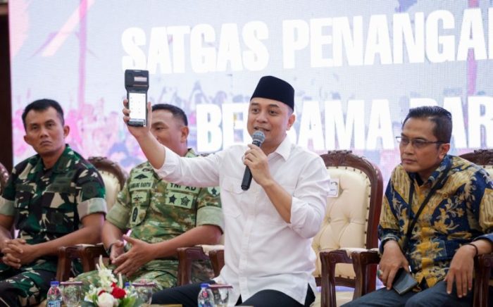 “Pengusaha tidak sendiri, Forkopimda Surabaya mulai dari Danpasmar, Kogartap, Polrestabes, Dandim bergabung. Karena saya dengan Cak Ji (Wakil Wali Kota Armuji) tidak bisa jalan sendiri, pasti bergabung dengan keamanan. Lalu kemudian kalau pengusaha tidak lapor? Gimana bisa mengerti kalau lahannya ditempati, jadi tolong laporkan itu biar diambil (ditindaklanjuti),” sebut Wali Kota Eri.