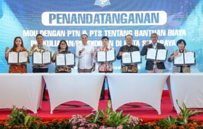 SURABAYATODAY.TODAY.ID, SURABAYA –Pemerintah Kota (Pemkot) Surabaya melakukan langkah revolusioner dalam dunia pendidikan dengan menjalin kerja sama strategis bersama 8 Perguruan Tinggi Negeri (PTN) dan 24 Perguruan Tinggi Swasta (PTS) melalui Penandatanganan Nota Kesepahaman (MoU) di Lobby Balai Kota pada Kamis, (5/2/2026). Kerja sama ini, berfokus pada pemberian beasiswa berupa bantuan biaya perkuliahan bagi mahasiswa dari keluarga prasejahtera di Kota Pahlawan.