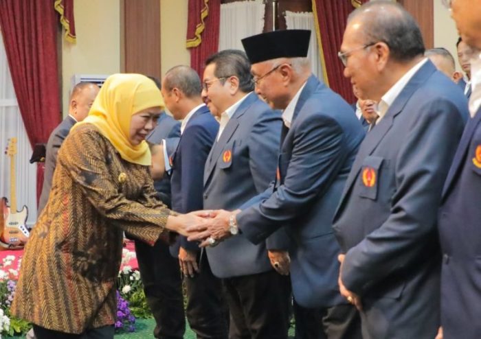SURABAYATODAY.ID, SURABAYA – Gubernur Jawa Timur Khofifah Indar Parawansa menyaksikan pelantikan Pengurus Komite Olahraga Nasional Indonesia (KONI) Provinsi Jawa Timur masa bakti 2025–2029 di Gedung Negara Grahadi, Surabaya, Selasa (10/2).