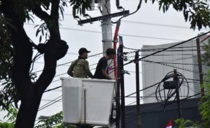 Selain penertiban, Satpol PP juga melakukan perapihan terhadap kabel udara yang dinilai semrawut dan mengganggu estetika kota.