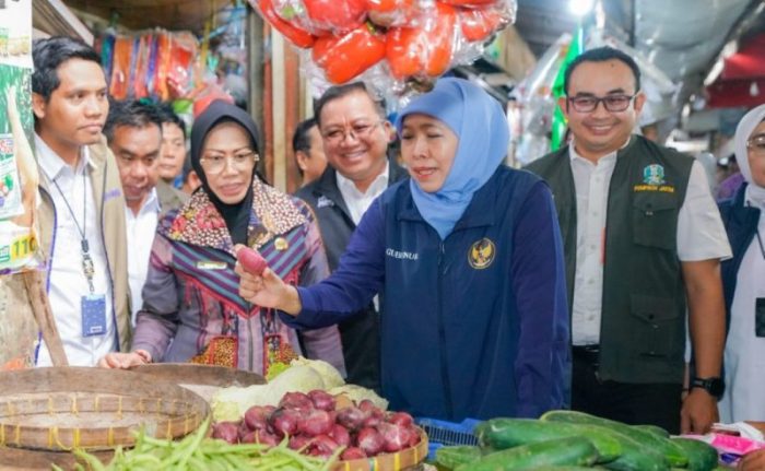 SURABAYATODAY.ID, SIDOARJO – Gubernur Jawa Timur Khofifah Indar Parawansa meninjau harga dan ketersediaan kebutuhan pokok di Pasar Larangan, Jl. Sunandar Priyo Sudarmo, Kab. Sidoarjo, Kamis (19/2).