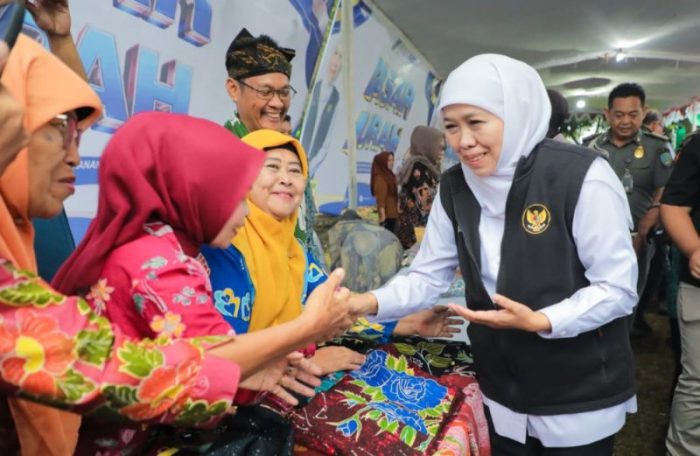 Dalam kesempatan itu, Gubernur Khofifah juga menyerahkan bantuan beras kepada lansia dan membagikan telur kepada ibu-ibu yang membawa anak sebagai bentuk perhatian terhadap pemenuhan gizi keluarga. Ia juga memborong produk makanan, minuman, serta kerajinan pelaku UMKM yang turut dilibatkan dalam kegiatan tersebut sebagai dukungan terhadap ekonomi lokal.