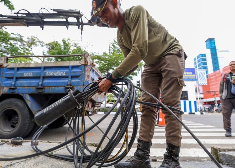 Pemkot Surabaya Tertibkan Utilitas Kabel FO dan Tiang Provider di Kawasan Jalan  Adityawarman