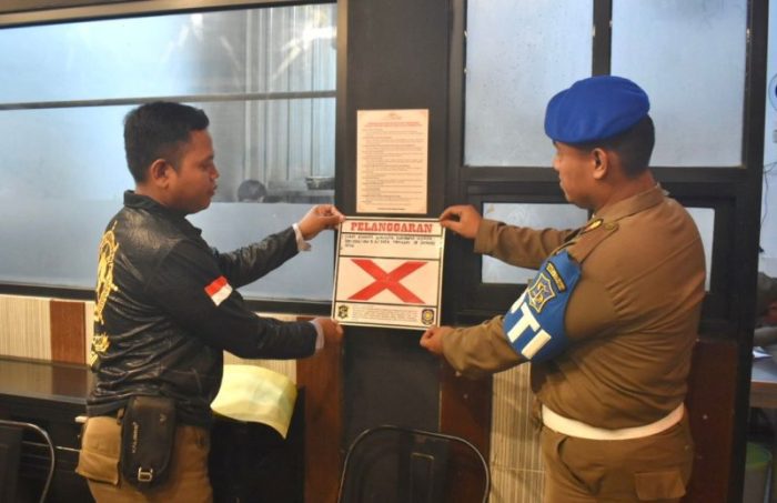Selain penyitaan, petugas juga memasang stiker pelanggaran di masing-masing restoran sebagai bentuk penegasan sanksi administratif.