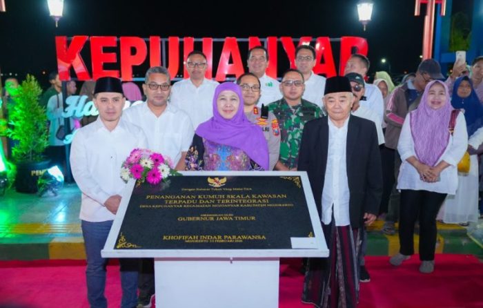 SURABAYATODAY.ID, MOJOKERTO – Gubernur Jawa Timur Khofifah Indar Parawansa meresmikan Penanganan Kumuh Skala Kawasan Terpadu dan Terintegrasi melalui Program Permata Jatim di Desa Kepuhanyar, Kecamatan Mojoanyar, Kabupaten Mojokerto, Senin (23/2) malam.