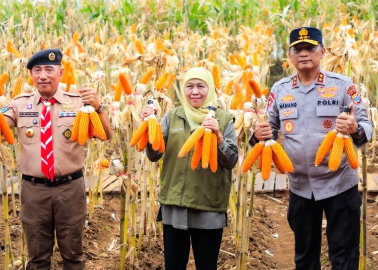 Khofifah menjelaskan bahwa Jawa Timur saat ini tercatat sebagai produsen jagung terbesar nasional. Berdasarkan data BPS tahun 2025, total produksi jagung Jawa Timur mencapai 4,59 juta ton atau berkontribusi sebesar 28,39 persen terhadap produksi nasional, dengan luas panen 758.469 hektare dan menjadi yang tertinggi di Indonesia.