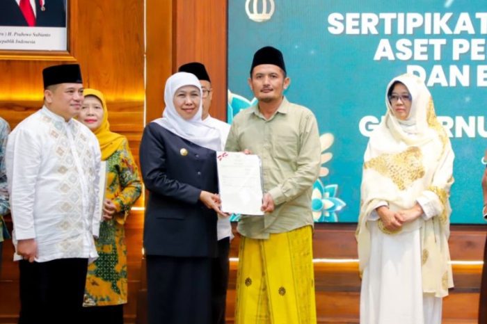 Lebih lanjut, Khofifah menekankan bahwa sertipikat bukan sekadar administrasi pertanahan, melainkan bagian dari komitmen mewujudkan tata kelola pemerintahan yang transparan, akuntabel, dan berorientasi pada pelayanan publik. Penataan aset yang tertib diyakini akan mendorong pemanfaatan yang lebih produktif, berkelanjutan, serta berdampak langsung pada kesejahteraan masyarakat.