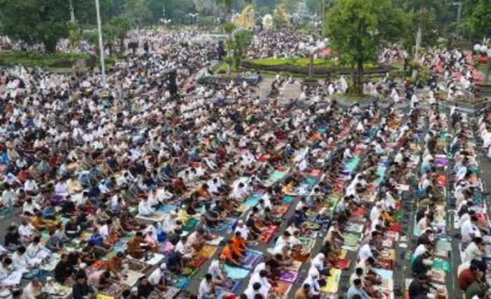 Tepat pukul 06.00 WIB, salat dimulai dengan dipimpin oleh Ust. Muhammad Anwari, M.Pd., seorang Qori Nasional yang bertindak sebagai imam. Sementara itu, Prof. Abdul Kadir Riyadi, Lc., MSSC., Ph.D. hadir memberikan pesan-pesan spiritual dan kemanusiaan sebagai khatib.