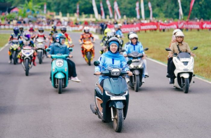 Gubernur Jawa Timur Khofifah Indar Parawansa menjajal  Sirkuit Suryo Magetan usai meresmikan sirkuit tersebut.