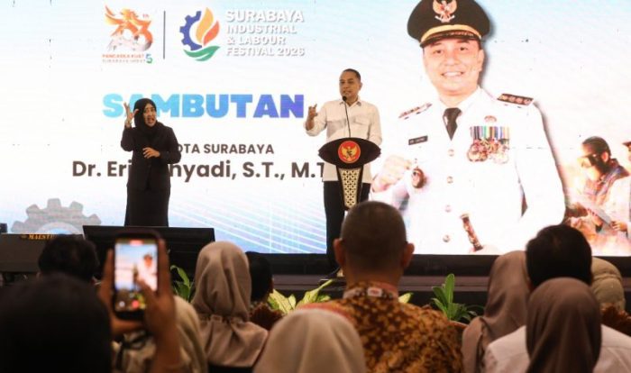SURABAYATODAY.ID, SURABAYA – Wali Kota Surabaya, Eri Cahyadi, memberikan apresiasi setinggi – tingginya kepada para pelaku usaha di Kota Pahlawan, yang berhasil menyerap 1.200 tenaga kerja ber-KTP Surabaya melalui kegiatan Job Fair dalam rangkaian acara Surabaya Industrial & Labour Festival 2026 di Grand City Convention Hall, Kamis (9/4/2026).