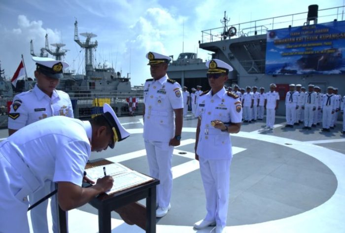 SURABAYATODAY.ID, SURABAYA –Komandan Satuan Kapal Amfibi (Dansatfib) Koarmada II, Kolonel Laut (P) Deni Indra M., S.Sos., M.Tr.Hanla., M.M., memimpin upacara Serah Terima Jabatan (Sertijab) Komandan KRI Teluk Kupang-519. Kegiatan tersebut dilaksanakan di Geladak Heli KRI Teluk Kupang-519 yang sandar di Dermaga Ende Koarmada II, Ujung Surabaya, Rabu (8/4).