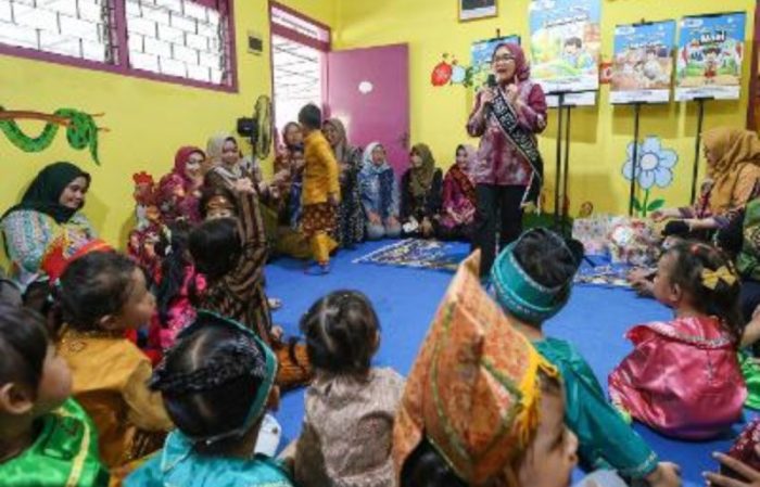 SURABAYATODAY.ID, SURABAYA –Memperingati Hari Kartini yang jatuh setiap bulan April, Pemerintah Kota (Pemkot) Surabaya bersama Bunda PAUD Kota Surabaya, Rini Indriyani, melakukan kunjungan ke sejumlah Pos PAUD Terpadu (PPT) pada Kamis (16/4/2026). Kunjungan ini bertujuan untuk mengasah imajinasi dan literasi anak usia dini melalui metode mendongeng.