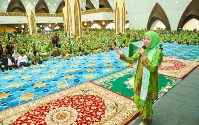 SURABAYATODAY.ID, BANDUNG – Ketua Umum Dewan Pembina PP Muslimat Nahdlatul Ulama Khofifah Indar Parawansa memimpin langsung Halal Bihalal sekaligus peringatan Harlah ke-80 Muslimat NU di Masjid Al Jabbar Kota Bandung, Jawa Barat, pada Sabtu (18/4).
