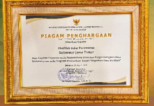 “Alhamdulillah kami menerima Penghargaan Corporate Social Responsibility (CSR) dan Pengembangan Desa Berkelanjutan (PDB) Award Tahun 2026 dari Kementerian Desa dan Pembangunan Daerah Tertinggal,” kata Gubernur Khofifah di Surabaya, Jum’at (24 /4).