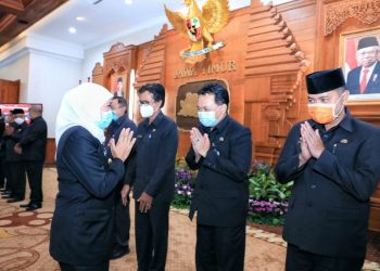 Surabayatoday.id, Surabaya - Gubernur Jawa Timur, Khofifah Indar Parawansa, menyaksikan prosesi serah terima nota pelaksanaan tugas enam Penjabat Sementara (Pjs) ...
