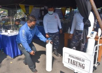 Makin Banyak Warga yang Isi Ulang Oksigen di Posko TNI AL Koarmada II di Jalajaya