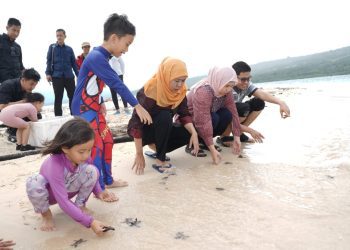 Khofifah Lepas Puluhan Tukik di Pulau Tabuhan Banyuwangi