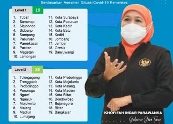 SURABAYATODAY.ID, SURABAYA – Berdasarkan hasil asesmen situasi Covid-19 dari Kemenkes per 13 Oktober 2021, ada 34 kabupaten/kota di Jawa Timur ...