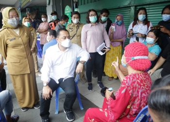 SURABAYATODAY.ID, SURABAYA - Wali Kota Surabaya Eri Cahyadi meninjau vaksinasi Covid-19 bagi para pedagang di Pasar Genteng Baru, Jalan Genteng ...