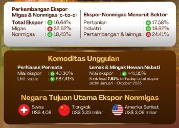 Ekspor Jatim Januari – Oktober 2025 Naik 16,64 Persen Dibanding 2024