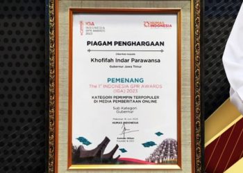SURABAYATODAY.ID, SURABAYA - Gubernur Jawa Timur Khofifah Indar Parawansa menerima anugerah sebagai Pemimpin Terpopuler di Media Online tahun 2021 dalam ...