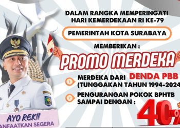 SURABAYATODAY.ID, SURABAYA - Pemkot Surabaya mengajak masyarakat memanfaatkan program “Promo Merdeka” pembebasan sanksi administratif Pajak Bumi Bangunan (PBB) dan pengurangan ...