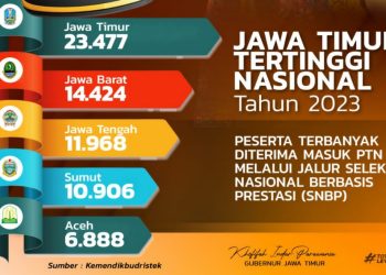 SURABAYATDAY.ID, SURABAYA - Provinsi Jawa Timur menduduki peringkat pertama dengan jumlah terbanyak nasional untuk siswa lolos masuk Perguruan Tinggi Negeri ...