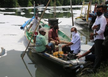 SURABAYATODAY.ID, SURABAYA - Wakil Wali Kota Surabaya, Armuji meninjau muara sungai yang berdekatan dengan Rumah Pompa Tambak Wedi, Kecamatan Kenjeran, ...